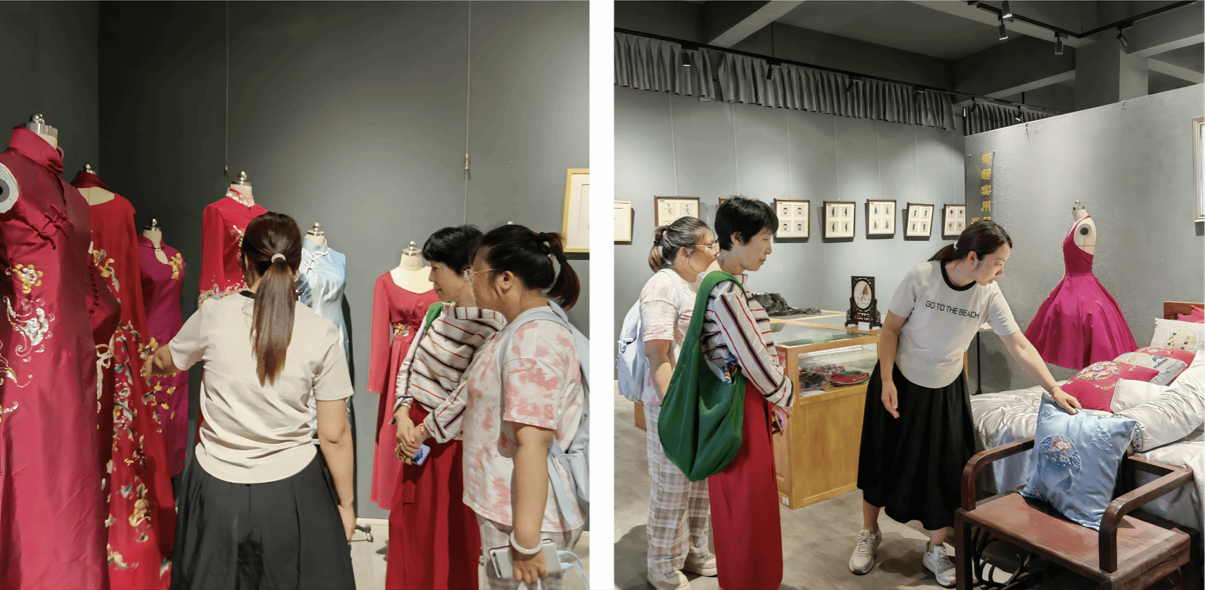 “中国有礼仪之大,故称夏;有服章之美,谓之华。”,威廉希尔体育结合专业特色,立足传播中华优秀传统服饰文化中蕴含的精巧构图、精美纹样、精湛技艺,为此次科技周设计了“匠艺之美”、“匠技之美”、“天然之美”、“雕琢之美”、“衣礼之美”、“秀衣之美”六大主题系列活动,参与本次活动人数近300人,其中包括常州纺织服装职业技术公司(图一)、辽宁轻工职业公司(图二)等参赛师生参与其中。“匠艺之美”通过“参观+讲授”的方式给同学们普及蜀绣针法技艺,了解蜀绣文化中一针一线的艺术价值;“匠技之美”通过参与第十三届全国职业院校员工服装制版与工艺大赛服务工作、专家点评、作品观摩等环节,让同学们近距离感受来自全国职业院校赛手风采,学习领悟工匠精神实质;“天然之美”通过体验传统手工古法染色技艺,体验者了解和掌握各类染料的提取、染色等技术,领略天然天成之美的中国古典美学真谛;“雕琢之美”通过革艺居工作室的同学讲解皮雕工具及使用方法、手工皮具制作工艺流程,体验皮具小挂件全流程制作的方式进行;“衣礼之美”通过尚衣阁工作室对中华优秀服饰代表旗袍的讲解学习,传播中华民族特有的文化价值、弘扬民族精神。“秀衣之美”,与2023中国国际老员工时装周同行,公司师生通过线上观看2023中国国际老员工时装周院校作品,感受服装服饰优秀设计作品体现的“行走中的艺术之美”。