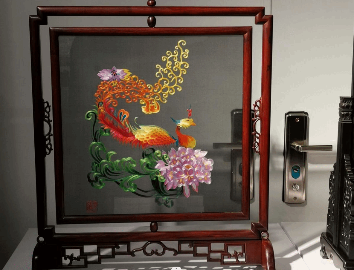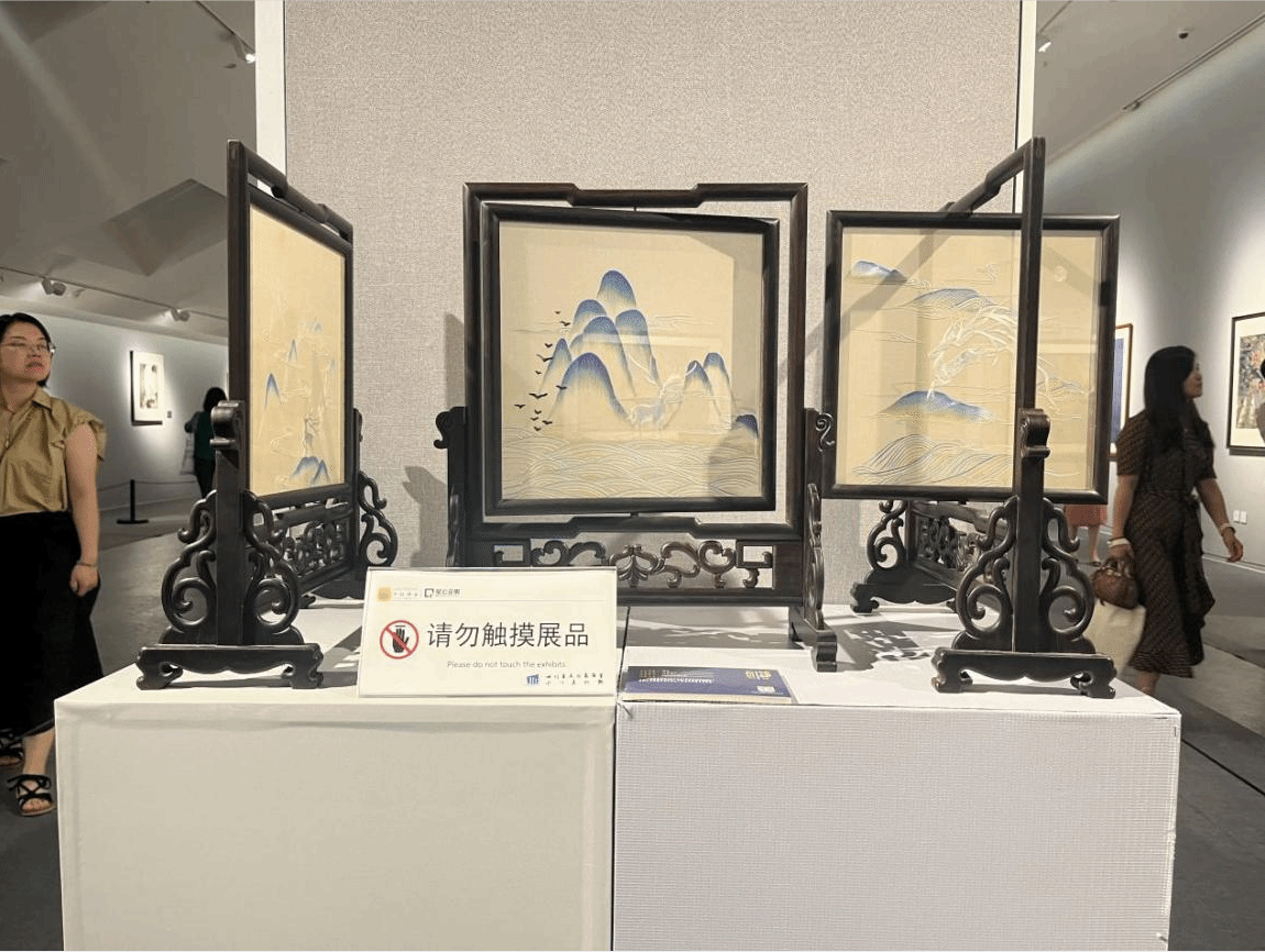 展览共分为历史珍藏、名家新秀、民族织绣、文创精品4个板块。公司师生参展作品更多侧重于蜀绣作品的当代设计与创新。“回归生活”是传统民间手工艺当代传承与发展的最好途径。因此在针法、纹样、设计、审美、题材与传播方式等方面努力创新,创作出许多深受大众喜爱,符合现代审美,紧密融合日常生活的文创作品,展现传统民间刺绣艺术在当代的创新与价值,是作为高校纺织设计类专业应该探索和研究的方向,也是高校肩负起优秀传统文化创新与传承的责任和义务。