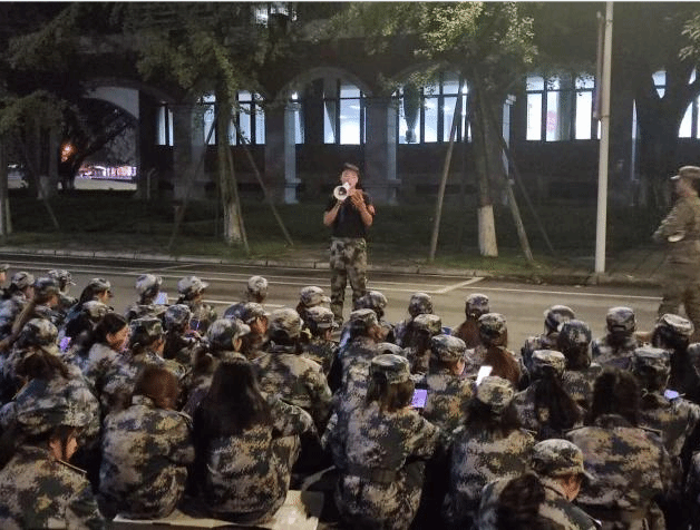 随着不断的练习与教官一对一的针对指导,每位同学都展现出了坚强的毅力与团队精神。夜幕降临,星星点点的路灯亮起,同学们迎来了期待已久的红歌演唱。在教官和助教的带领下,大家精神昂扬,高声歌唱,唱响了一首首充满爱国主义情怀的红歌。