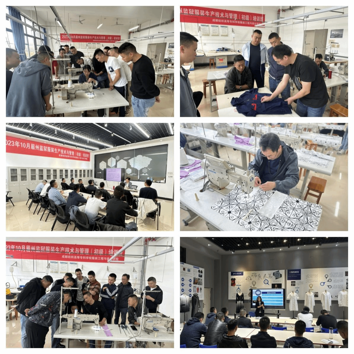 此次培训过程中,学员们掌握了基础的缝制工艺、缝纫设备基本故障判断及维护、成衣纸样样板制作、服装产品裁片认知与生产准备、裁剪工程等服装生产各环节要素。通过实操对监狱产线上的产品制作有了深刻认识,针对学员在工作岗位上对产线各环节的管理需求,培训期间专门讲解了流水线工序分解、产品品质控制、质量检验,并进行了实际操作演练。