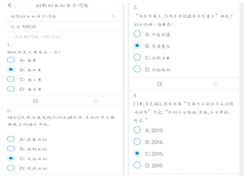 10月国庆节期间,创新创业部通过学习通发布了“创新创业知多少”的答题活动,该活动围绕双创相关赛事、政策、文件等内容进行设置。旨在鼓励同学们主动了解双创相关知识,与此同时,答题活动还可以激发参与者的创新思维,例如思考如何利用空闲时间进行尝试性实践、如何通过模拟实践和实习期间进行创业实践训练。最终,参与答题活动200余人,其中180余人达到100分满分。