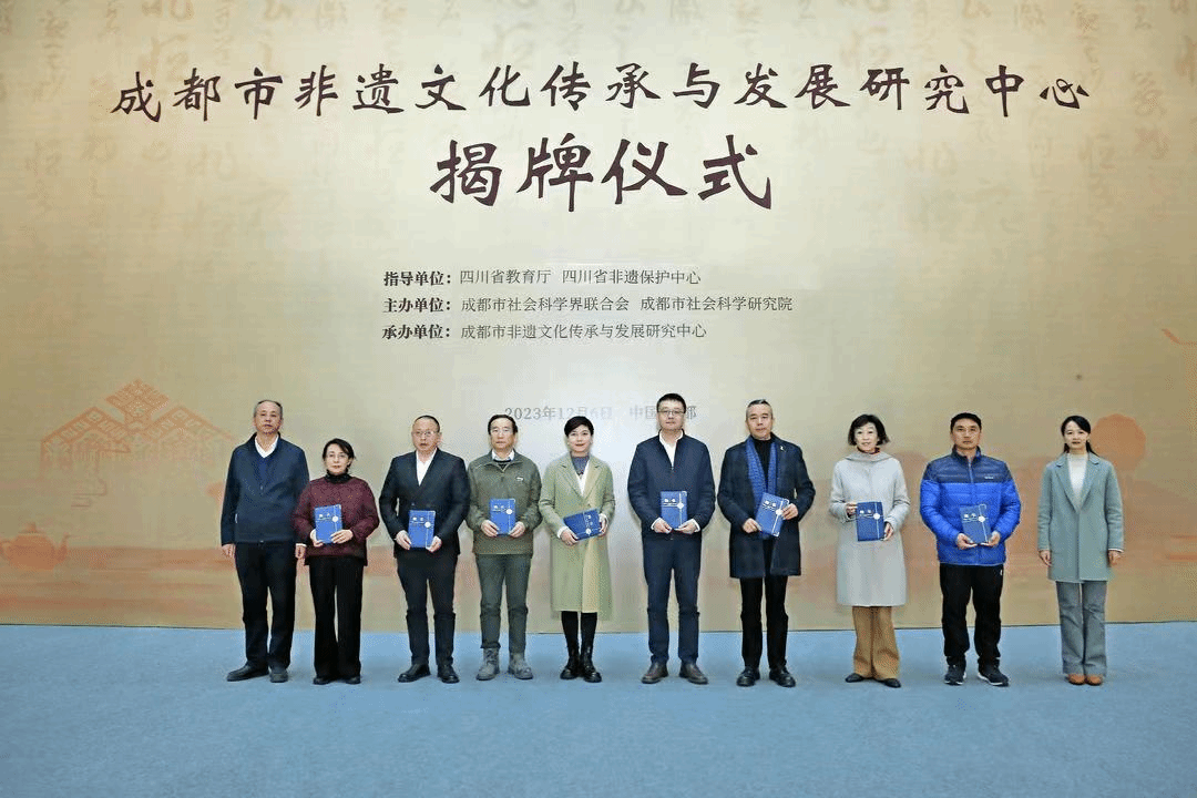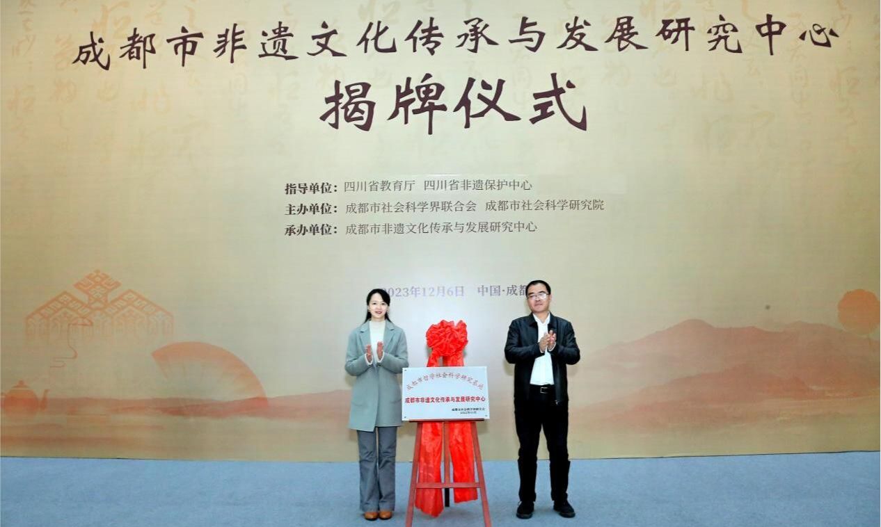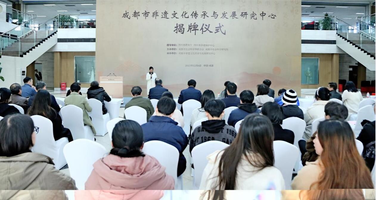 为进一步贯彻落实党的二十大精神,落实习近平总书记关于文化传承发展、非物质文化遗产保护工作的重要指示精神,2022年成都市社会科学界联合会批准威廉希尔体育为成都市哲学社会科学研究基地—成都市非遗文化传承与发展研究中心,2023年12月6日,研究中心揭牌仪式在威廉希尔体育顺利举行。