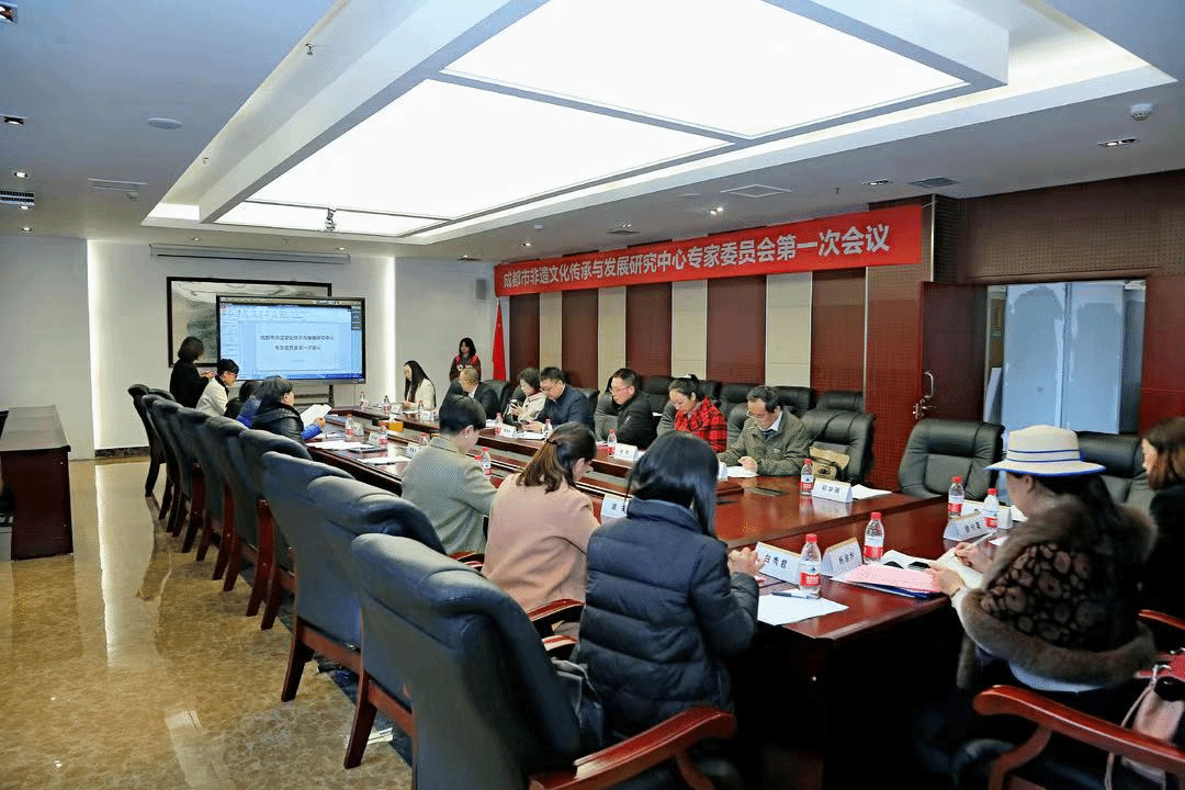仪式结束后,成都市非遗文化传承与发展中心召开了第一次专家委员会会议,会上委员们认真审议了“中心”的章程、对“中心”的课题发布内容进行了讨论。