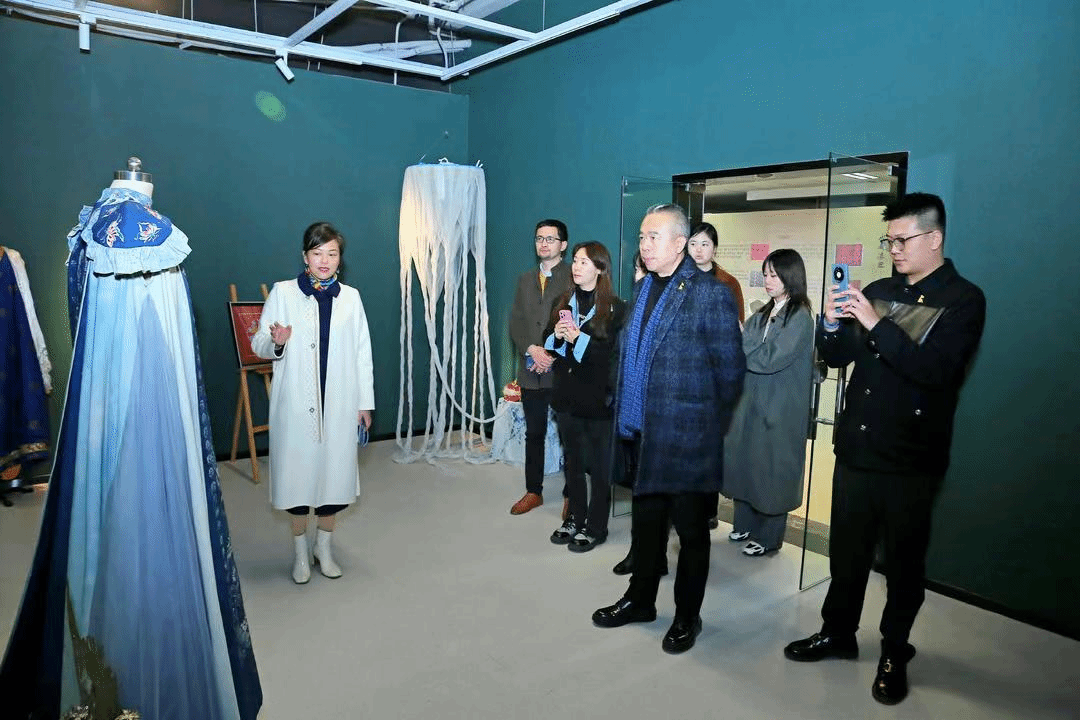 仪式开始前由公司时尚表演与传播专业的19名同学身着采用印、染、绣等非遗技艺的设计作品为现场观众呈现了一场精彩的非遗服饰秀。