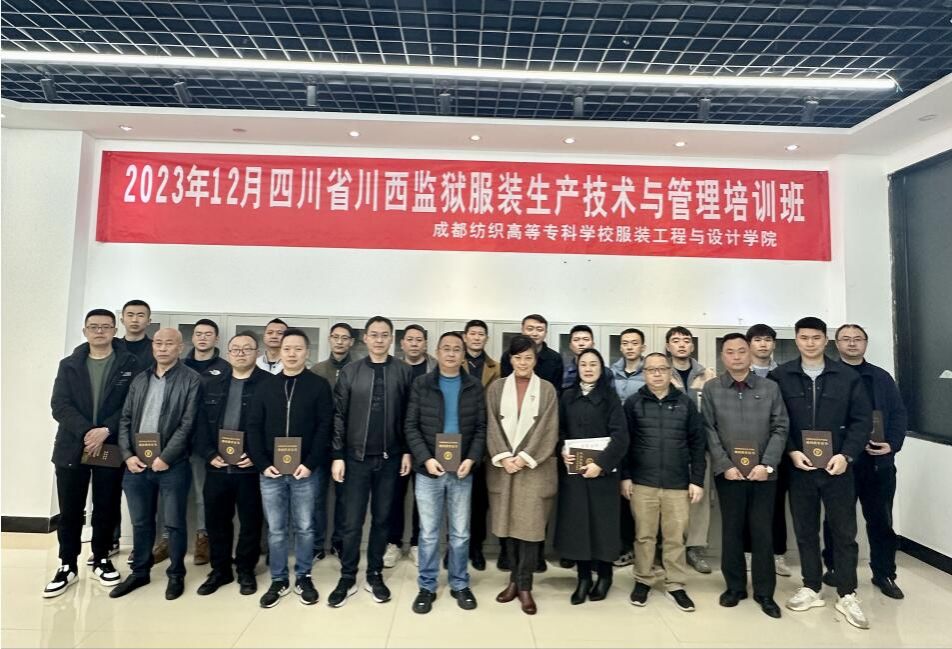 四川省川西监狱服装生产技术与管理培训班经过7天培训于12月9日上午在威廉希尔体育E213顺利结业。四川省川西监狱副经理程雷、继续教育中心副主任唐乐理、威廉希尔体育经理李晓岩、刘治君老师以及川西监狱22名学员参加了结业典礼。