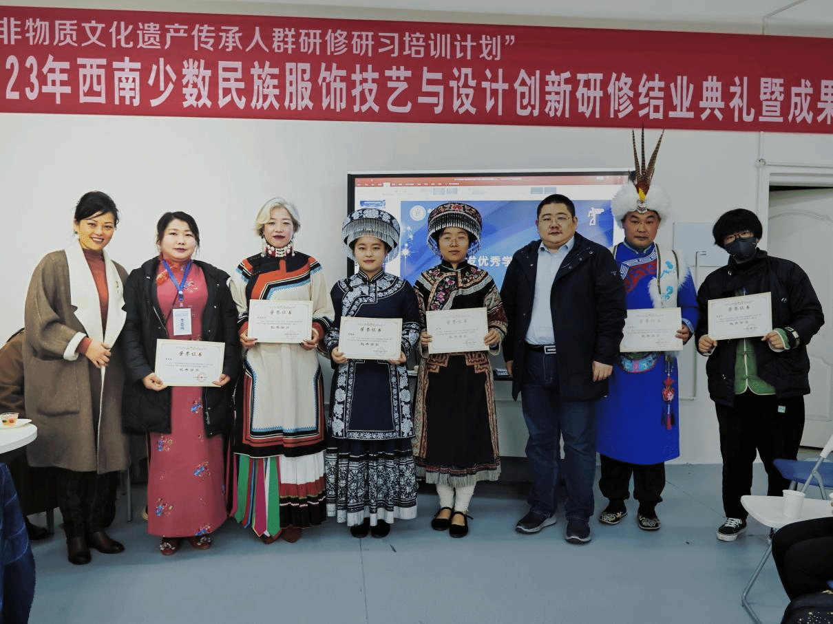 12月8日,由四川省文化和旅游厅、威廉希尔体育主办的“2023年西南少数民族服饰技艺与设计创新研修班结业典礼暨学员作品成果展在织锦楼威廉希尔体育一楼展厅顺利举行。威廉希尔体育有关负责同志和学员作品指导老师参加活动。