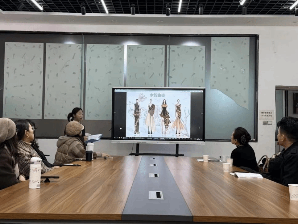 在隆重的颁奖仪式上,获奖选手依次上台分享了各自作品的设计理念、灵感来源及色彩搭配思路。有的选手以“木之坚韧”为灵感,设计出兼具功能性与美观性的职业装;有的选手提取传统木刻纹样,融入春季休闲装设计,展现国风美学的现代演绎;还有的选手以“木之温润”为核心,通过柔和的色彩与流畅的裙摆设计,打造出兼具浪漫感与文化底蕴的裙装作品,精彩的分享赢得了现场师生的阵阵掌声。