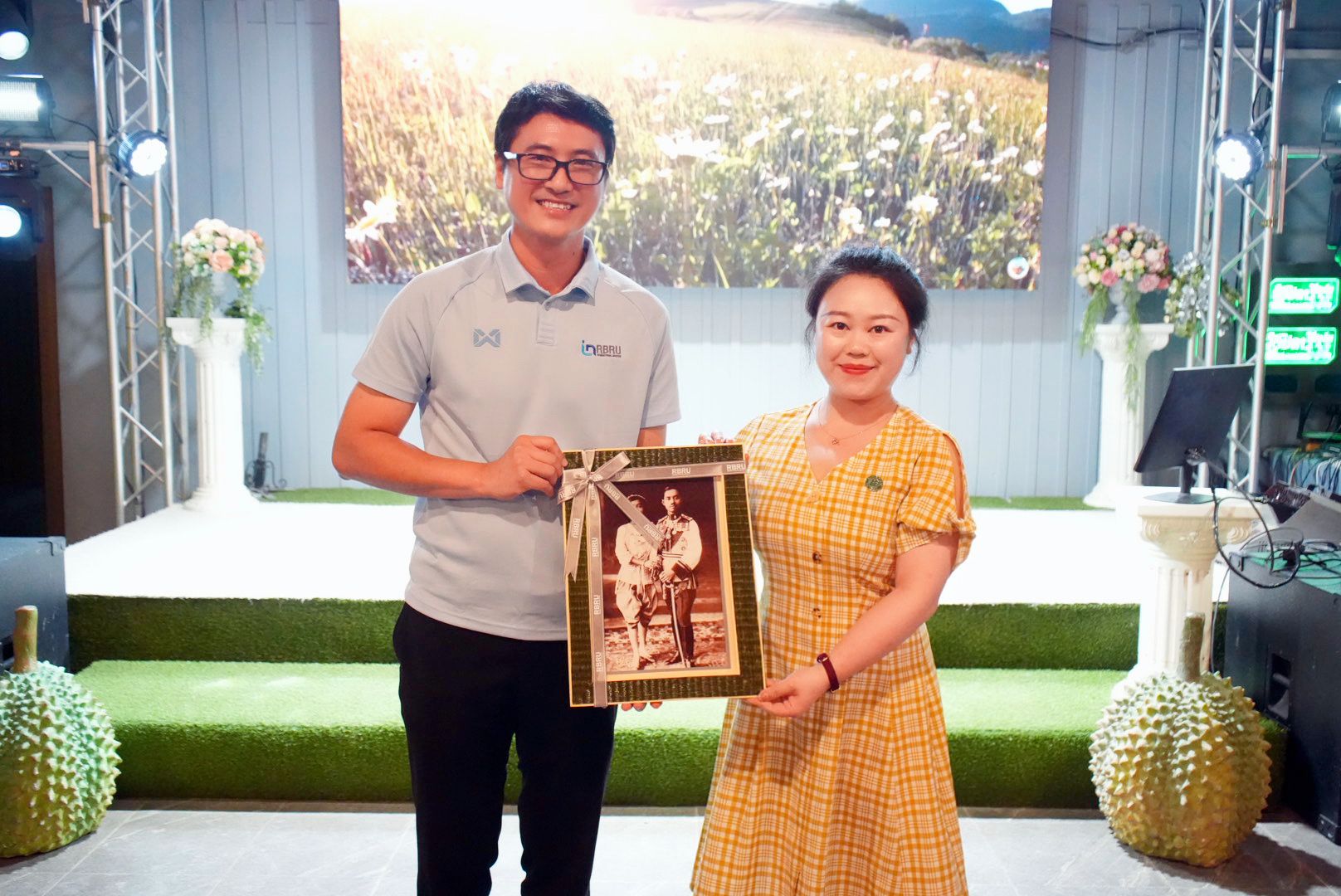 4月28日,公司蒋春燕老师拜访兰帕潘尼皇家大学董事长助理贾克拉盘·旺帕博士,双方就未来合作进行深入交流并签订合作协议。当日下午,各研学小组展示了精心制作的视频作品,分享了学习心得。晚间,中泰师生共同举办文艺演出,通过舞蹈、歌曲、乐器演奏、书法展示等形式,呈现了一场精彩纷呈的文化盛宴。演出结束后,双方互赠纪念品,表达美好祝愿。